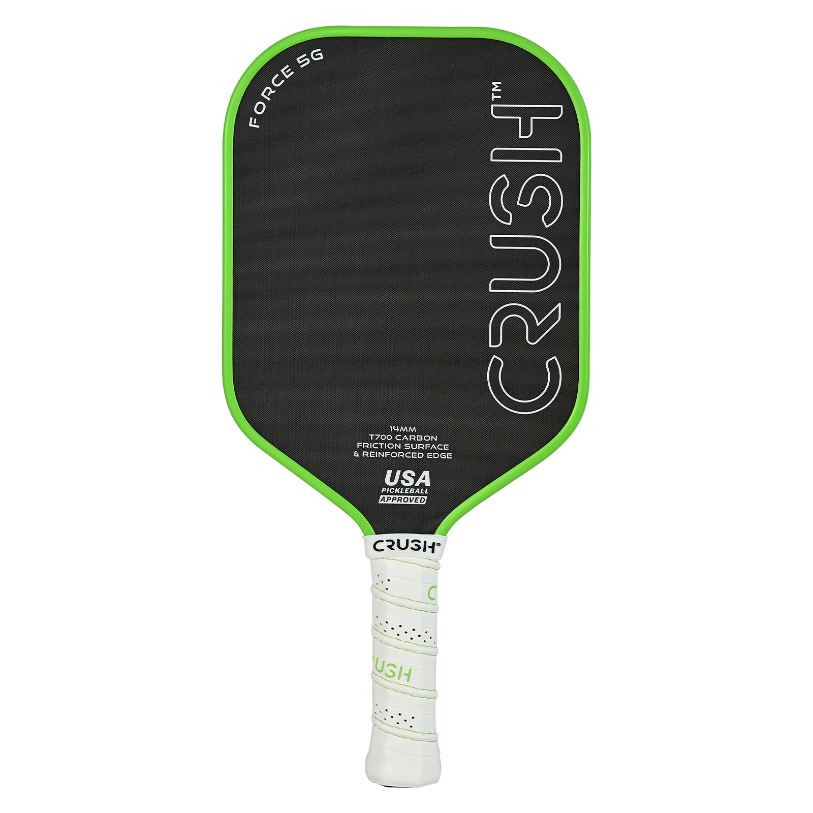 Play like the pros but with a smaller price tag! This truly is an incredibly balanced paddle with both power and control. Over 6 months of engineering, the Force 5G combines next generation thermoform engineering, reinforced edge, T700 carbon combed at 45°, reinforced sweet spot, EVA foam injected handle, trade secret assembly, and premium material selection. The Force 5G is our own design, pro-tested for durability and guaranteed to make you smile when you swing!